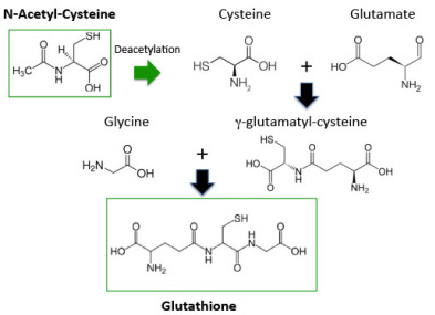 글루타치온은 시스테인, 글루탐산, 글리신을 이용하여 만들어지며 -SH기의 활성이 뛰어나 항산화 물질임.