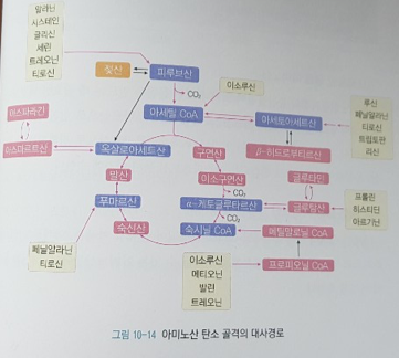 # 아세토아세틸 CoA <--- 류신, 페닐알라닌, 티로신, 트립토판, 리신