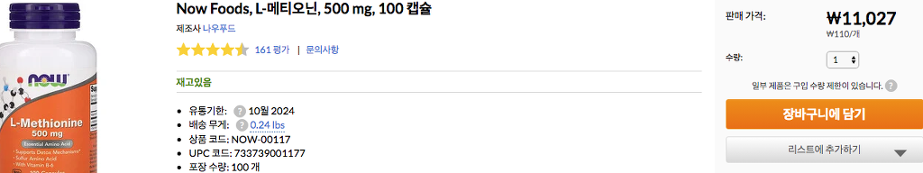 # 메티오닌 - 메틸기 제공, 시스테인 전구체
