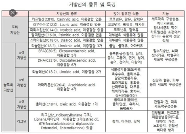 짧은사슬 지방산 | <10 | 포화지방산 | 0 | 비필수지방산 | 합성가능 |