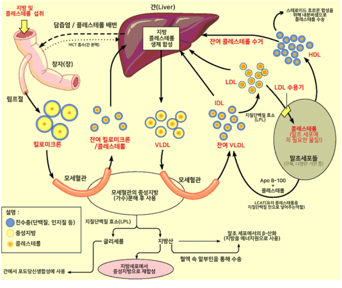 HDL | 8 | 22 | 20 | 50 | 말초조직세포 | 간세포 |