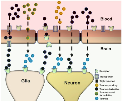 Concentrations of taurine are reliant on feeding and taurine's complex transport across TauT at the BBB, which can direct preservation of taurine concentrations in the brain to defend it against the CNS damage [68].