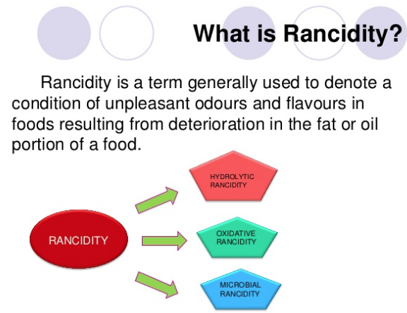 Microbial rancidity refers to a water-dependent process in which microorganisms, such as bacteria or molds, use their enzymes such as lipases to break down fat.