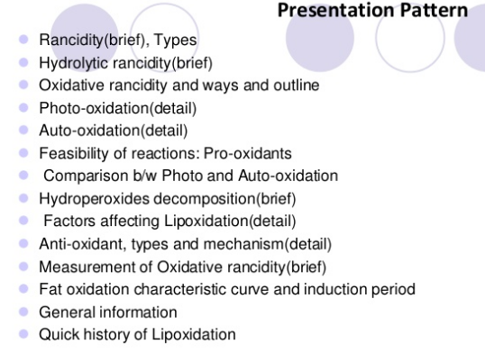 특히 불포화지방산은 공기, 햇빛, 습도, 박테리아에 노출되면 산화 또는 가수분해되어 불유쾌한 냄새, 맛을 냄. 드물게 치즈는 좋은 맛과 영양을 제공함.