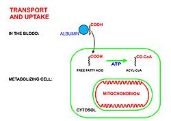Free fatty acids cannot penetrate any biological membrane due to their negative charge. Free fatty acids must cross the cell membrane through specific transport proteins, such as the SLC27 family fatty acid transport protein.[2][3][failed verification] Once in the cytosol, the following processes bring fatty acids into the mitochondrial matrix so that beta-oxidation can take place.