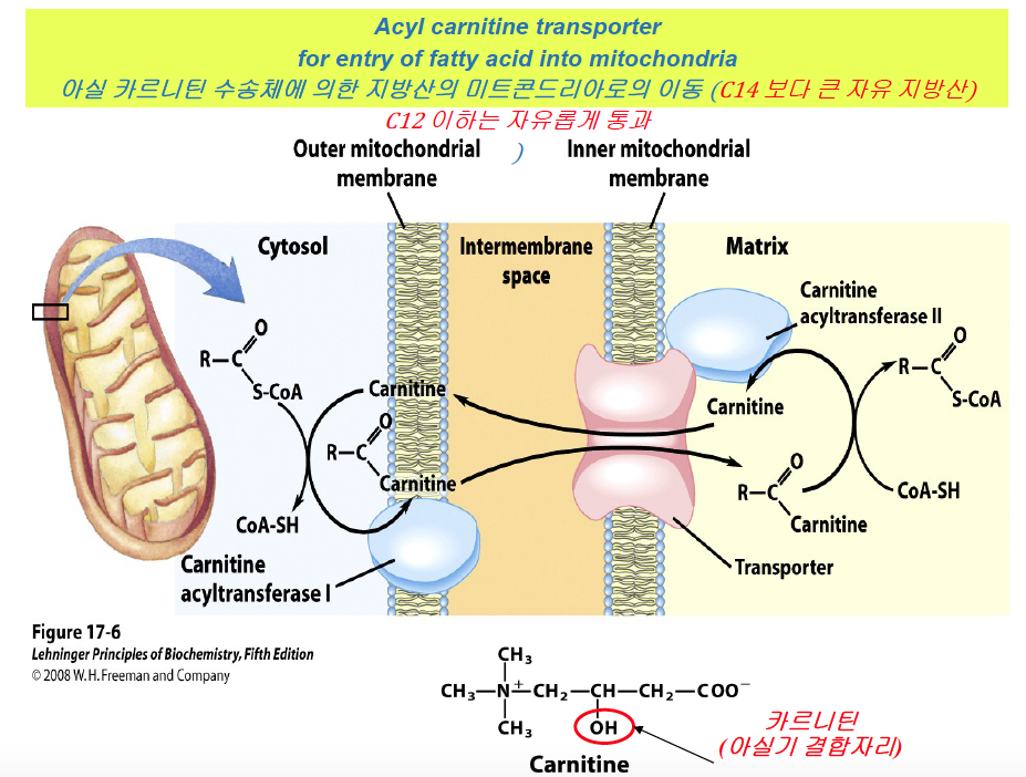 - If the fatty acyl-CoA contains a short chain, these short-chain fatty acids can simply diffuse through the inner mitochondrial membrane.[4]