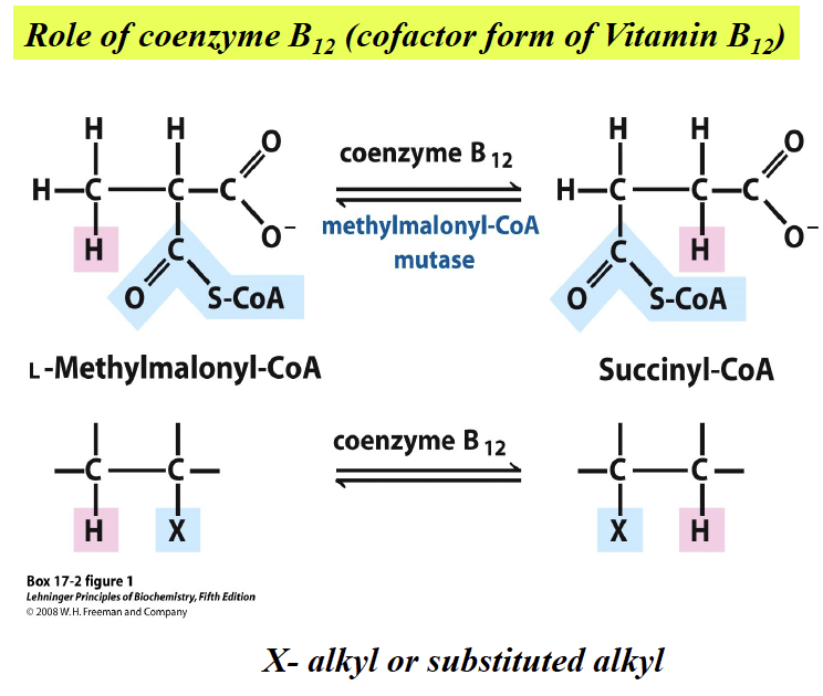 Propionyl-CoA is first carboxylated using a bicarbonate ion into D-stereoisomer of methylmalonyl-CoA, in a reaction that involves a biotin co-factor, ATP, and the enzyme propionyl-CoA carboxylase. The bicarbonate ion's carbon is added to the middle carbon of propionyl-CoA, forming a D-methylmalonyl-CoA. However, the D conformation is enzymatically converted into the L conformation by methylmalonyl-CoA epimerase, then it undergoes intramolecular rearrangement, which is catalyzed by methylmalonyl-CoA mutase (requiring B12 as a coenzyme) to form succinyl-CoA. The succinyl-CoA formed can then enter the citric acid cycle.