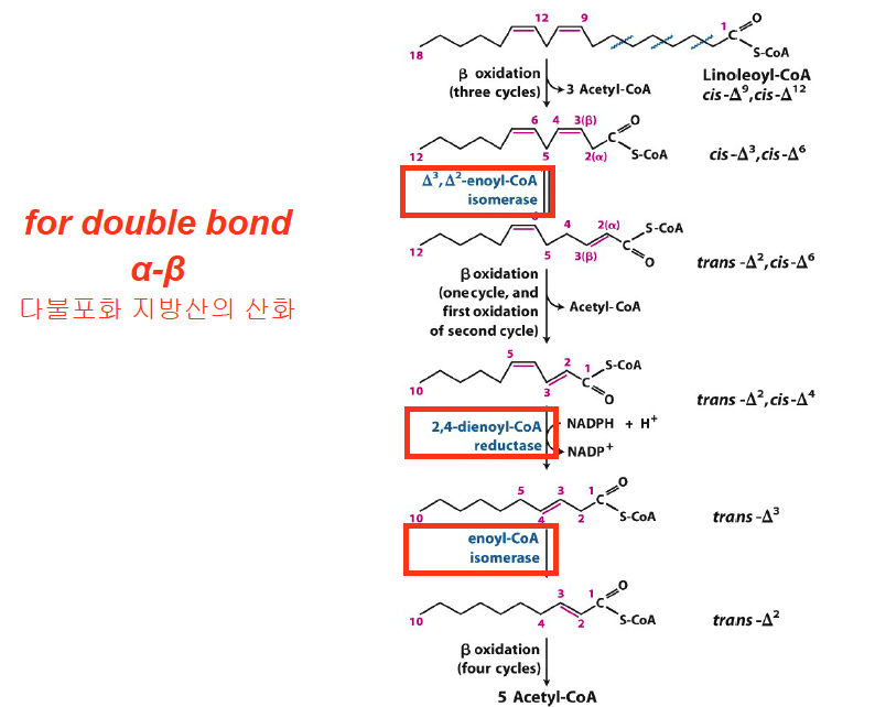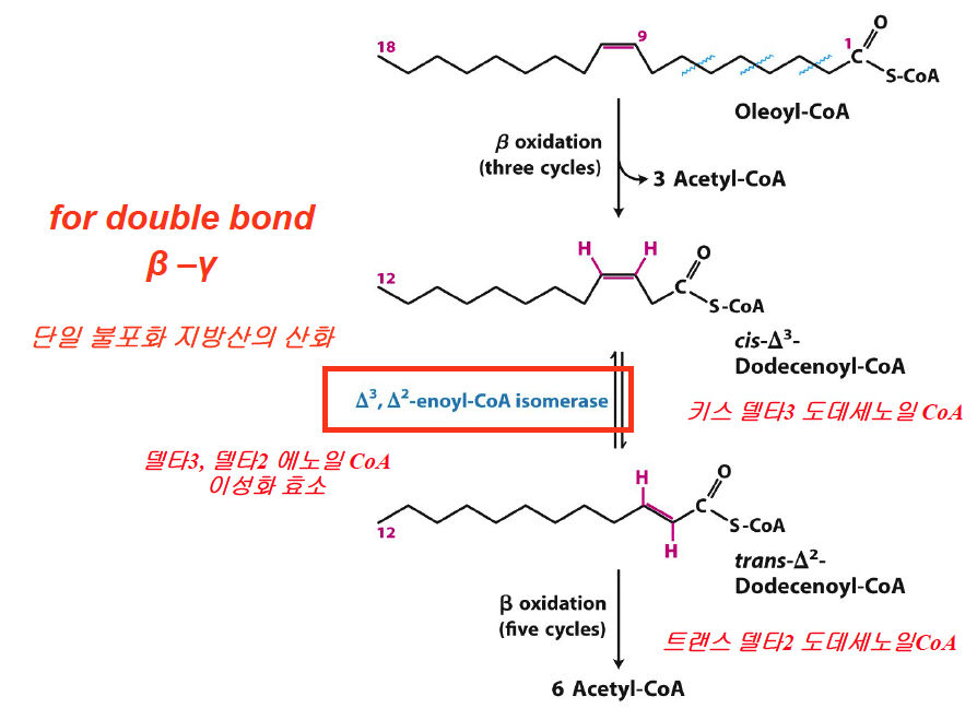 - Odd-numbered double bonds are handled by the isomerase.