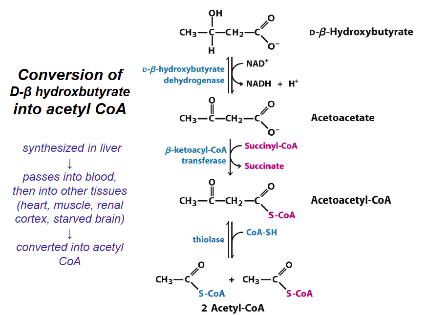 - L-3-hydroxyacyl CoA is dehydrogenated again to create 3-ketoacyl CoA by 3-hydroxyacyl CoA dehydrogenase. This enzyme uses NAD as an electron acceptor.