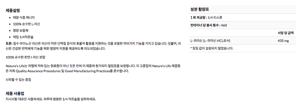 참고) 리신 보충제