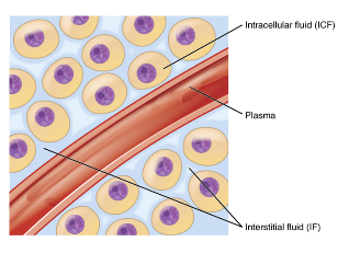 세포간질액(세포외액의 97%)은 각 세포에서 필요로 하는 산소 및 영양소를 공급하고 세포내에서 화학반응에 의한 결과로 생성된 최종 대사산물을 받음으로써 조직세포와 혈액사이에서 물질 교환이 일어나는 장소로서 역할을 함.