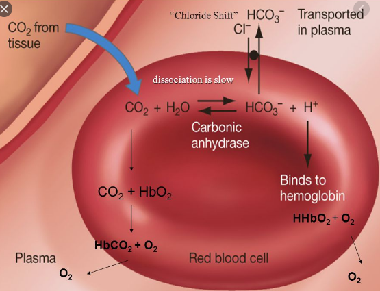 대사과정에서 생성된 이산화탄소가 적혈구내에서 중탄산이온으로 전환된 후 혈장으로 나갈때 염소이온은 반대로 혈장에서 적혈구안으로 들어오면서 적혈구의 전기적 중성을 유지하는데 관여함(Chloride shift).