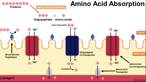 나트륨은 소장에서 능동수송에 의해 다른 영양소(포도당, 아미노사)의 흡수를 도움. 나트륨이 이들 영양소와 함께 세포막의 운반체에 결합한 후 농도차에 의해 나트륨이 세포안으로 들어갈때 영양소도 함께 들어감.