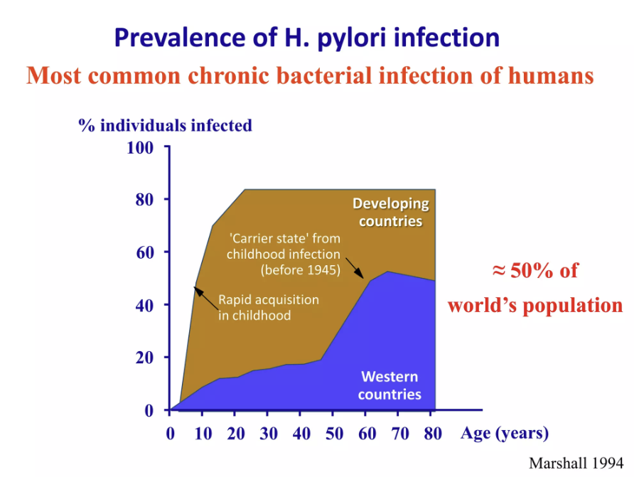 의문 1. 헬리코박터 파일로리 감염율 선진국 50%, 기타국가 80%