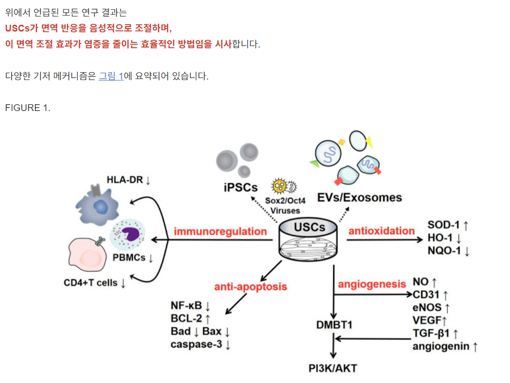 USCs가 파라크라인 메커니즘을 통해 치료 효과를 발휘하며,