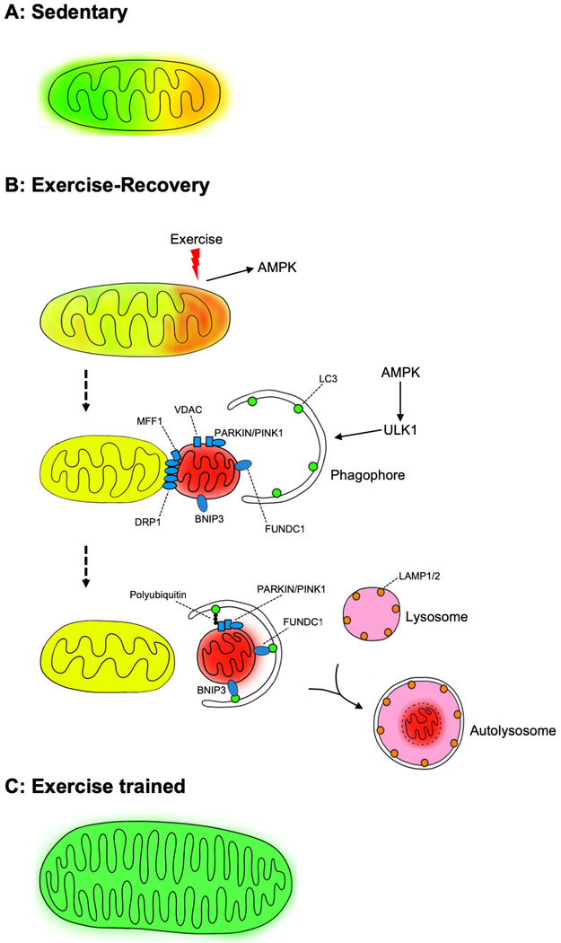 운동을 하면 갑자기 에너지가 많이 필요해진다. 우리 몸에서 에너지를 만드는 공장인 미토콘드리아가 많은 에너지를 충분히 만들어야 할 필요가 생기면, 서로 합쳐져서 큰 미토콘드리아 에너지 공장을 만든다. 또, 기능을 못하는 미토콘드리아는 제거된다.