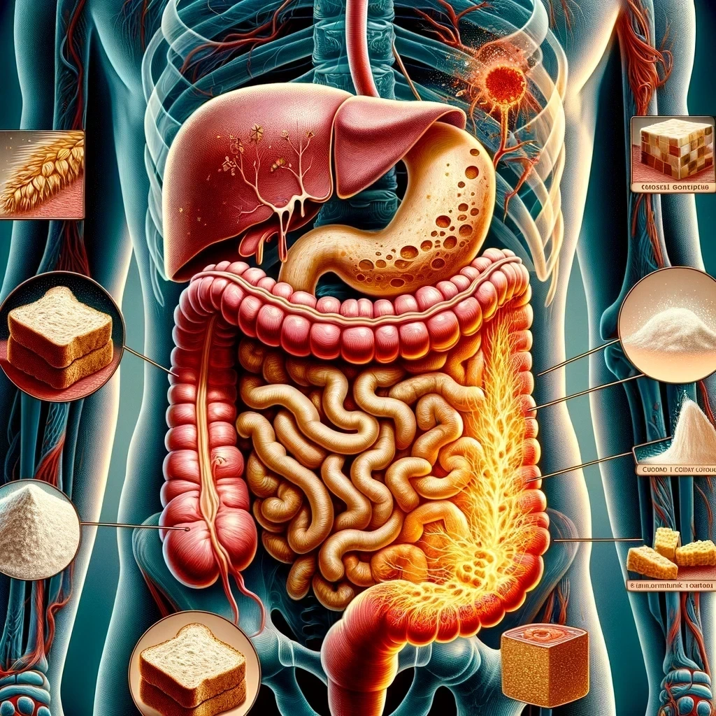 (DALL E - 글루텐이 장누수와 만성 염증을 일으킨다는 상상도)