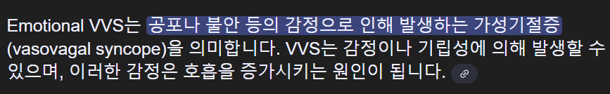 ESC 분류(Brignole et al., 2018a)에서 VVS는 '반사성 실신'의 한 형태이며, '신경 매개 실신'이라는 동의어로도 알려진 범주입니다. 이 반사는 자율 신경계에 의해 매개됩니다.