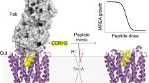 Electro-competent cells were prepared for 12 grlA RN4220 following the protocol from40. The competent cells were transformed with the pRMC2-norA expression vector. The transformants were selected on TSB-plates supplemented with 10 µg ml−1 of chloramphenicol and confirmed by PCR and Sanger sequencing (primers are listed in Supplementary Table 15).