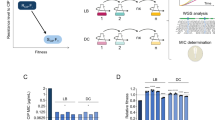 The strains from −80 °C stock were re-grown overnight. During the second transfers, strain positions within the plate were randomized using an automated pipetting station. Half of the populations were challenged with 1 mg l−1 of ciprofloxacin, and the other half with 1 mg l−1 ciprofloxacin and 33 µM reserpine. Every day, >800 populations were transferred to fresh medium containing the same dose of ciprofloxacin and/or reserpine. Population growth was measured after each transfer by reading optical densities (OD595) using a plate reader. The experiment was completed after five transfers.