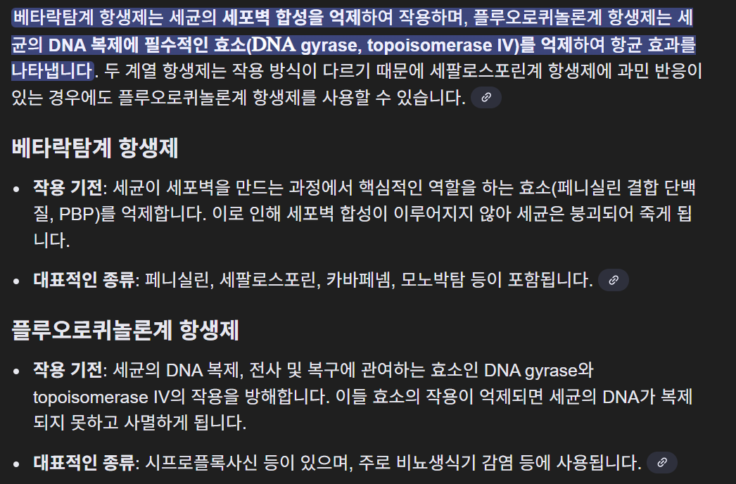 여기에는 이전에 효과가 있었던 항생제의 효능을 회복시키고