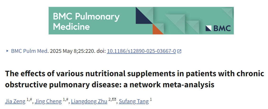 Inclusion Criteria: (1) Participants diagnosed with COPD, defined as a Forced Expiratory Volume in One Second to Forced Vital Capacity (FEV1/FVC) ratio of less than 70% of the predicted value, aged 18 years or older; (2) Interventions involving dietary supplements; (3) Control groups receiving nonspecific interventions or standard diets, referred to as the placebo; (4) Outcome measures including FEV1 as a percentage of predicted values, FEV1/FVC ratio, 6-minute walk distance (6MWD), modified Medical Research Council (mMRC) Dyspnea Scale, COPD Assessment Test (CAT), and St. George’s Respiratory Questionnaire (SGRQ); (5) Study design being a randomized controlled trial (RCT).Exclusion Criteria: (1) Studies combining other organic diseases, such as diabetes mellitus, renal disease, lung cancer; (2) Duplicate literature; (3) Animal studies, conference abstracts; (4) Inaccessible full text or no data available.
