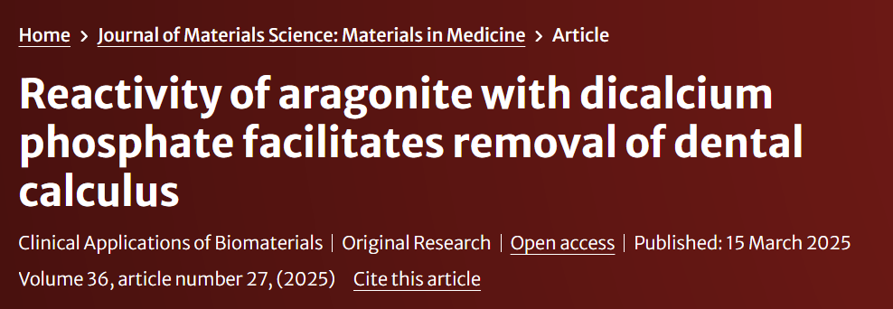 - 제목: Aragonite toothpaste for management of dental calculus: A double‐blinded randomized controlled clinical trial