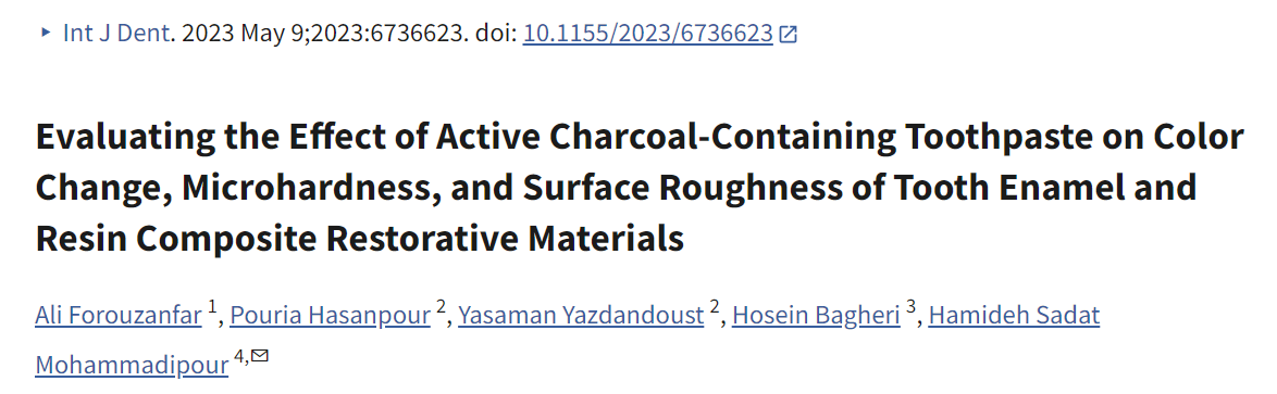 3. Evaluating the Effect of Active Charcoal‐Containing Toothpaste on Color and Microhardness of Enamel and Resin Composite (2023, International Journal of Dentistry, Wiley)