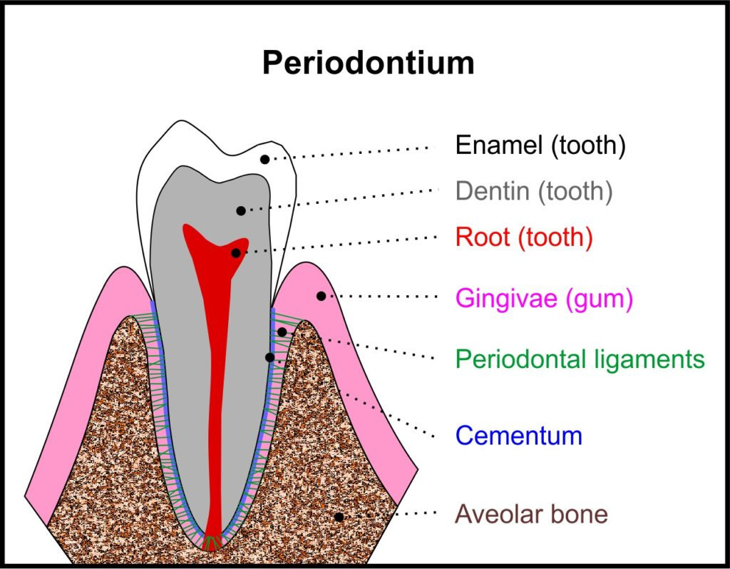 - 치주인대 (Periodontal ligament) – 치아와 뼈를 연결하는 섬유