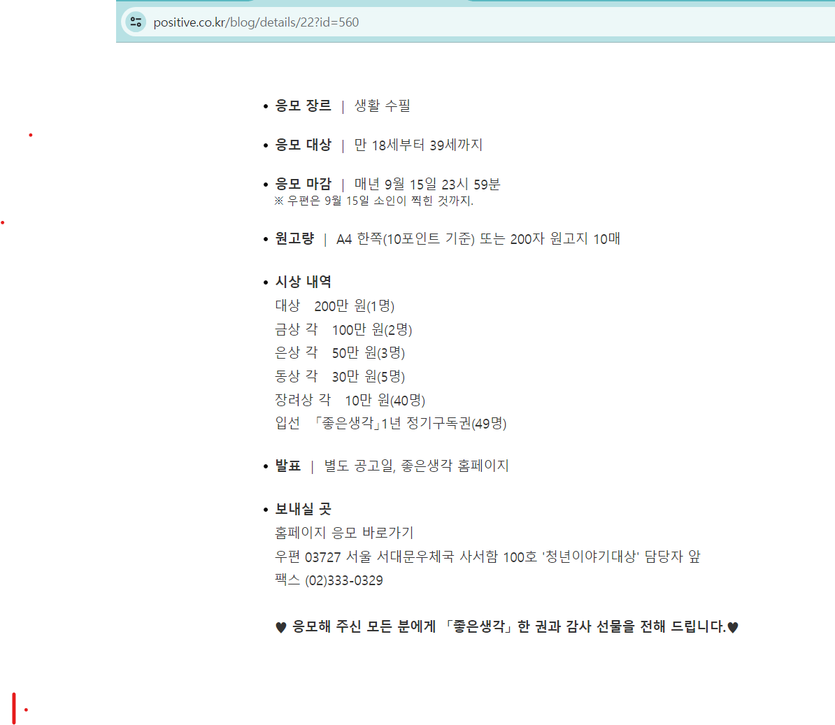 생활 수필_공모(9월) 작성자이문성|작성시간24.04.04|조회수47 목록 댓글 0 글자크기 작게가 글자크기 크게가 좋은 생각을 나누는 좋은 경험이 되길 응원합니다. 다음검색 현재 게시글 추가 기능 열기 북마크 공유하기 신고 센터로 신고 댓글 댓글 0 댓글쓰기 답글쓰기 댓글 리스트