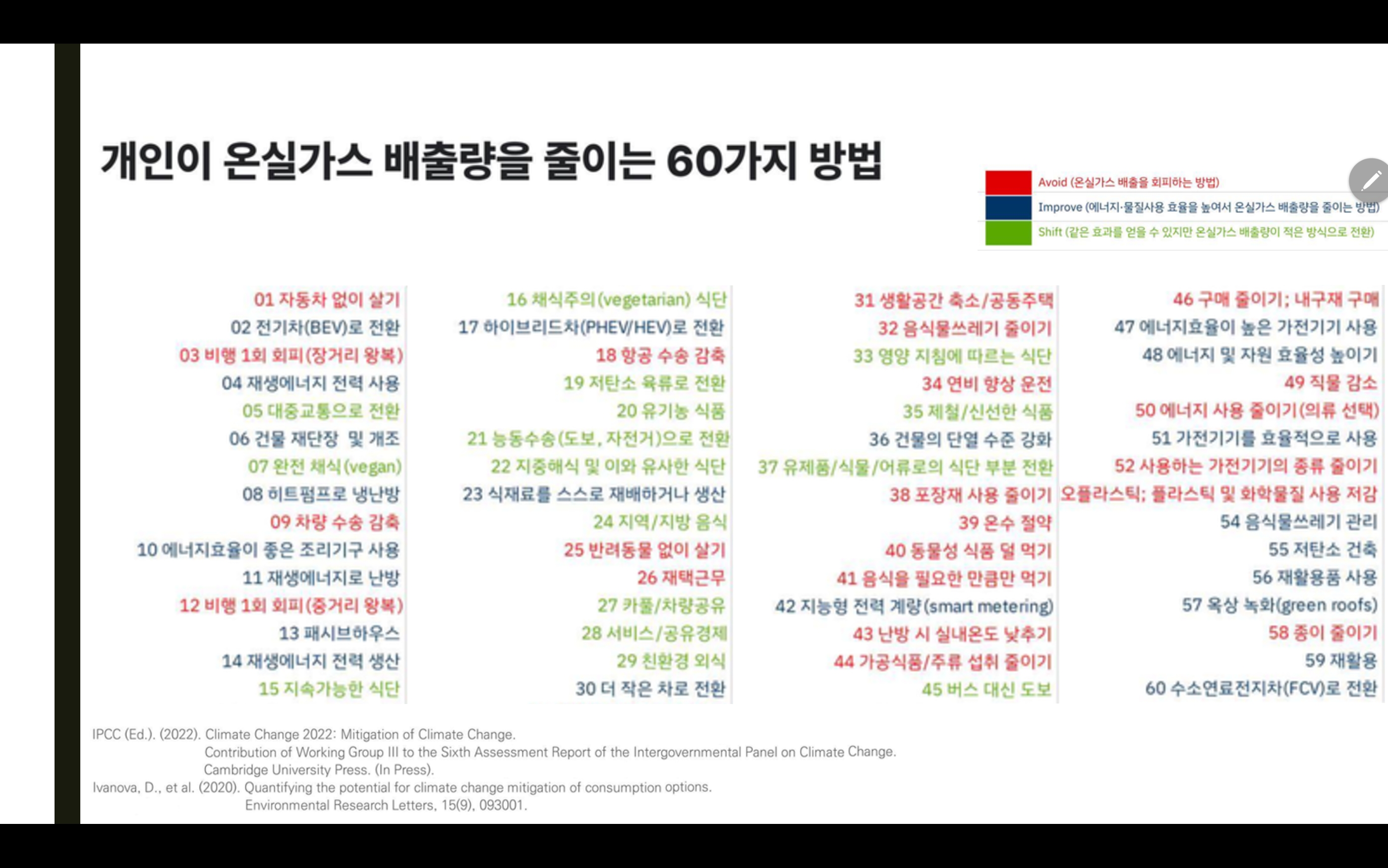 지구온난화 완화를 위한 개인적 해결책 60가지 작성자20 환공 고건|작성시간22.11.20|조회수42 목록 댓글 1 글자크기 작게가 글자크기 크게가 다음검색 현재 게시글 추가 기능 열기 북마크 공유하기 신고 센터로 신고 댓글 댓글 1 댓글쓰기 답글쓰기 댓글 리스트 작성자이문성 | 작성시간 22.11.21 고맙습니다. 좋은 정보가 될 듯합니다. 댓글 전체보기
