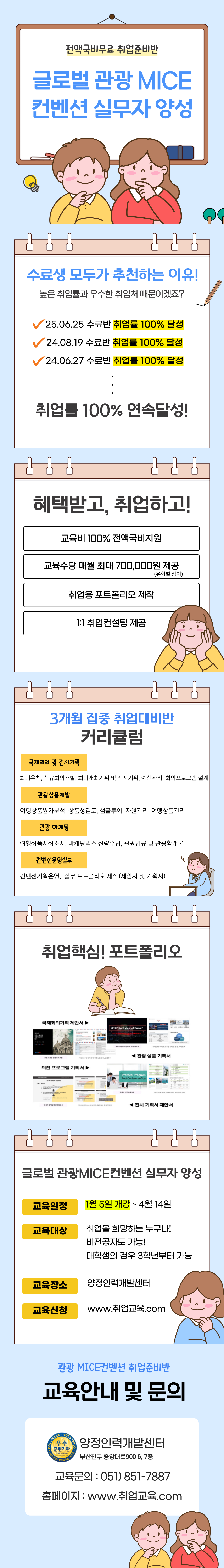 🚨이제는, 관광·MICE컨벤션 전문가로 양정인력개발센터에서 시작하세요!