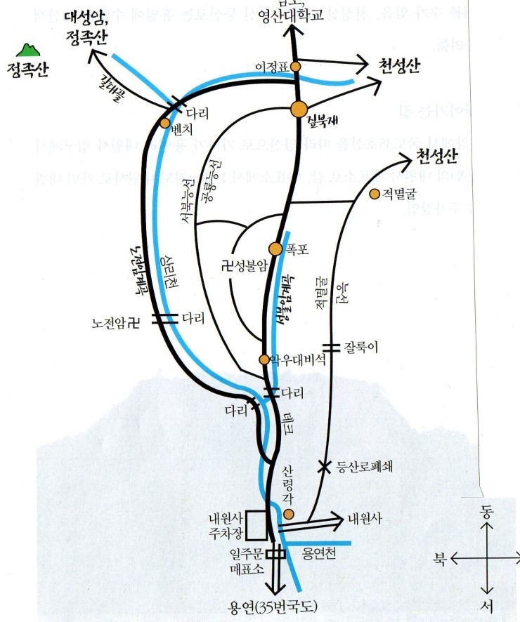 ㅇ A코 스 : 내원사 매표소~성불암 계곡~집북재~상리천 계곡~노전암~
