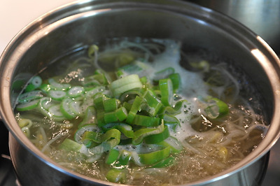 ▶ 재료 : 콩나물 150g, 멸치육수 3컵, 간장 1숟가락, 대파, 마늘 약간