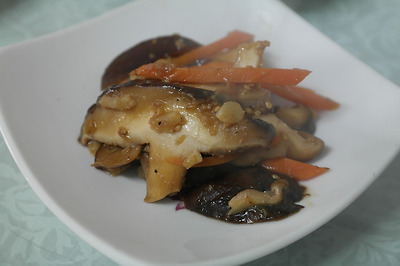 ▶ 재료 : 표고버섯 6개, 당근 약간, 진간장 2숟가락, 매실액기스 2숟가락,물 3숟가락, 깨소금, 참기름, 마늘 약간