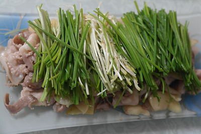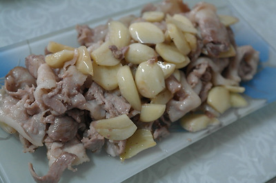 ▶ 재료 : 대패삼겹살 300g, 마늘 10개, 달래 50g, 소금, 후추 약간
