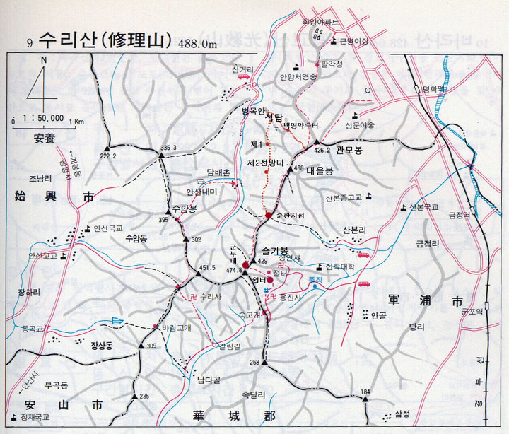 4. 수리약수터 입구~관모봉~태을봉~슬기봉~감투봉~시민체육광장~산본역(약5시간)