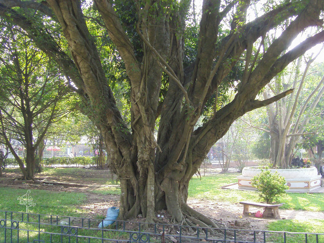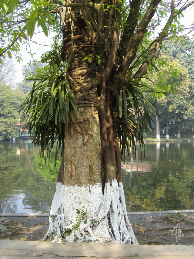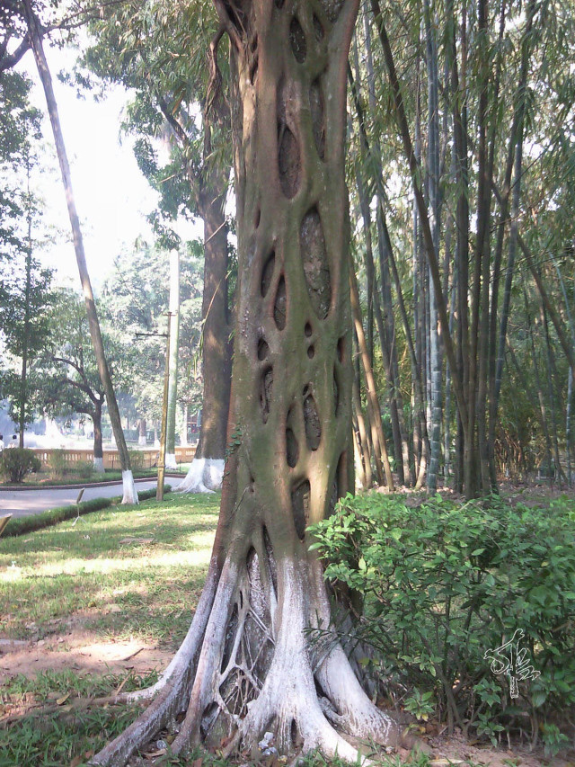 이 나무는 세가지 나무가 하나로 살고 있다. 위 가운데보면 야자나무가 있다. 기이한 나무를 보았다.