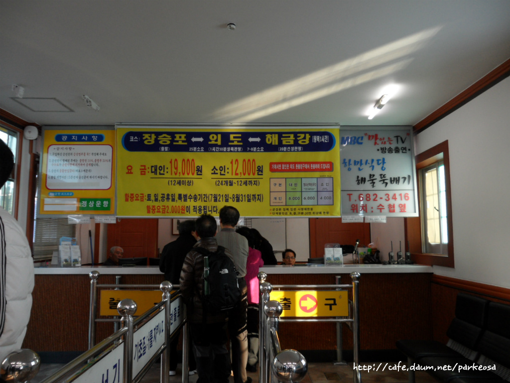 여기는 해금강 선상유람 및 외도 입장을 위해 이용하는 선착장 중 한 곳으로 첫 배는 9시 40분에 있다.