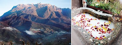 키나발루산의 웅장한 자태(왼쪽), 스파.