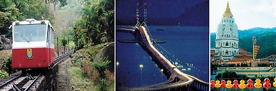 페낭 힐. 페낭대교. 극락사(왼쪽부터).