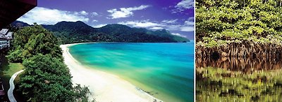 랑카위 리조트. 랑카위 리조트 내부. 랑카위의 공예품 센터(왼쪽부터).