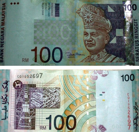 ▲100링깃 짜리돈 - 태국돈 1000밧짜리랑 비슷함.말레이시아 화폐권종중 최고액권 입니다