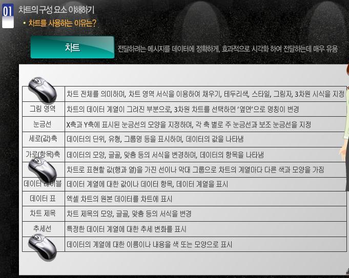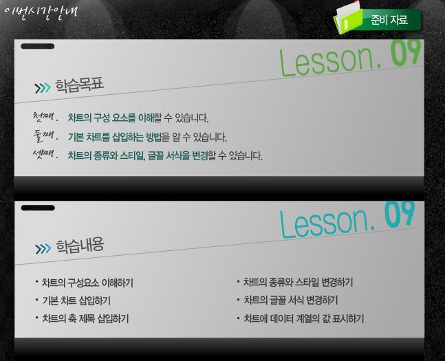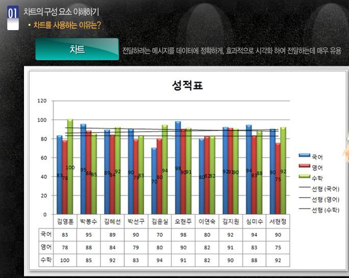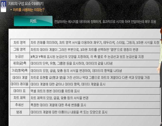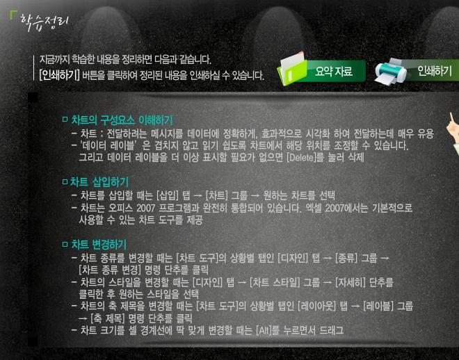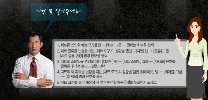 차트의 구성요소 이해, 기본 차트 삽입, 차트 축 제목 삽입, 차트의 종류와 스타일변경하기, 차트의 글꼴변경하기...
