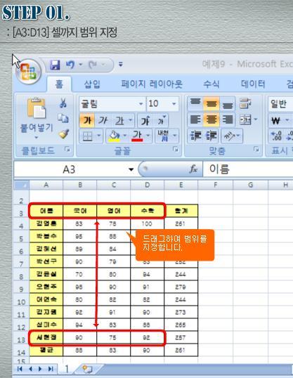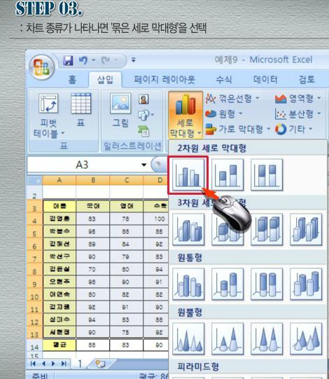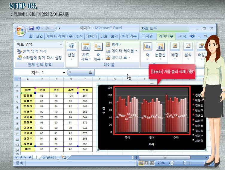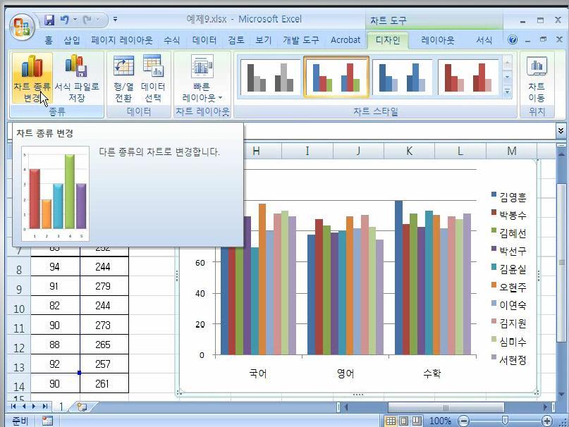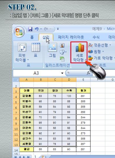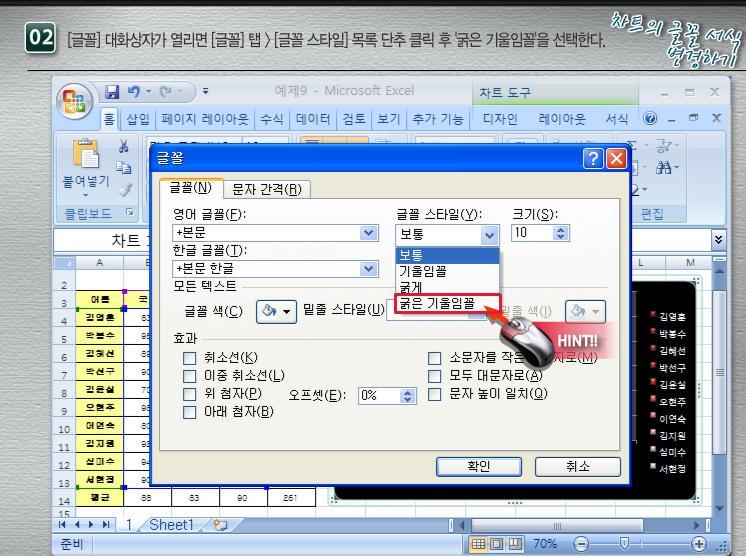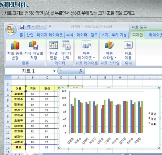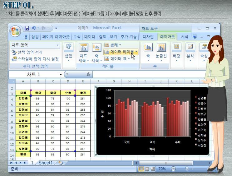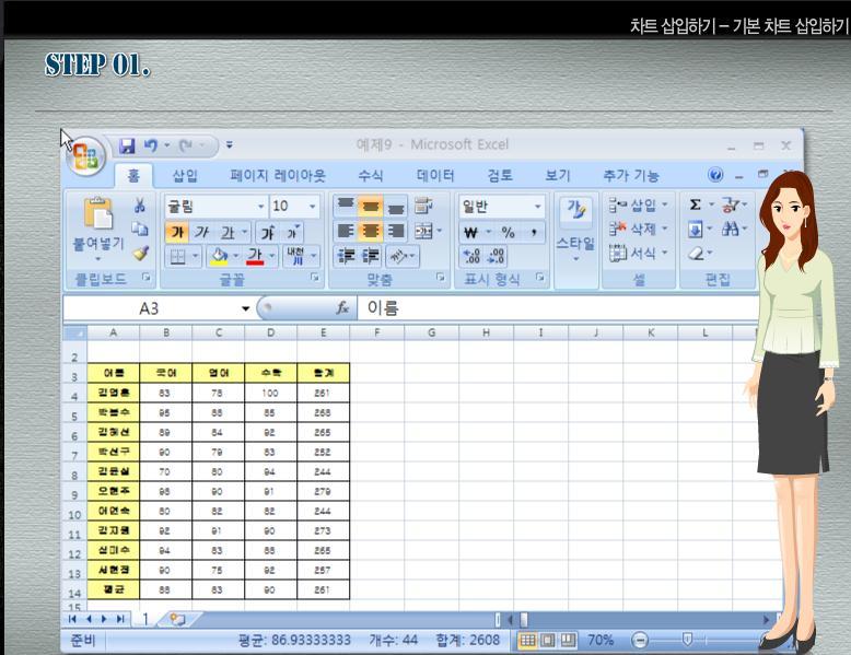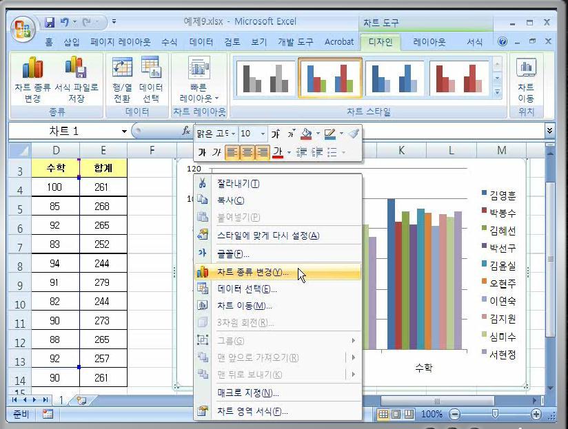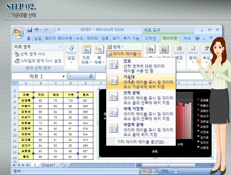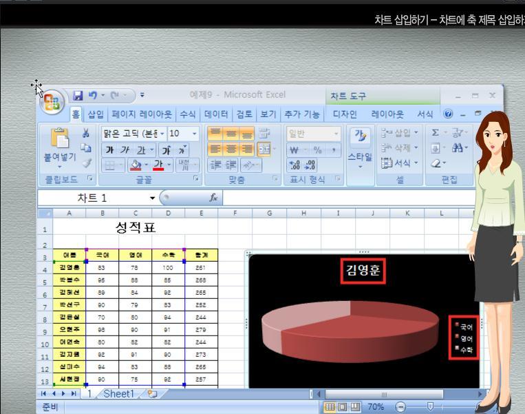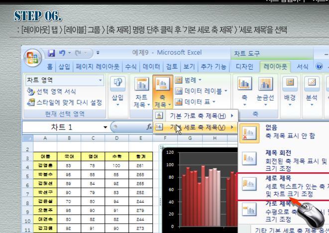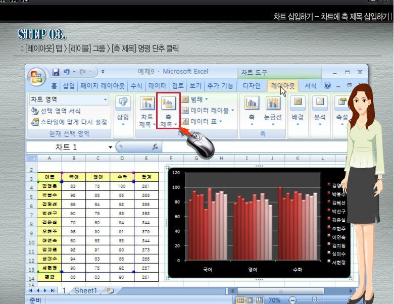 12년 엑셀2007 - 9 그래프작성 및 편집하기 (차트삽입,차트축제목, 차트변경, 차트글꼴서식변경, 차트데이터계열값표시)