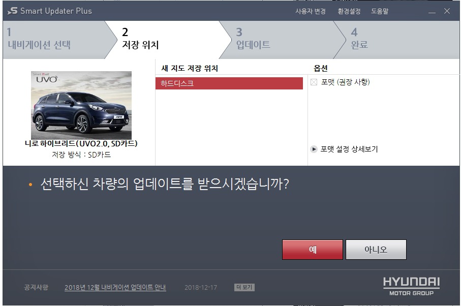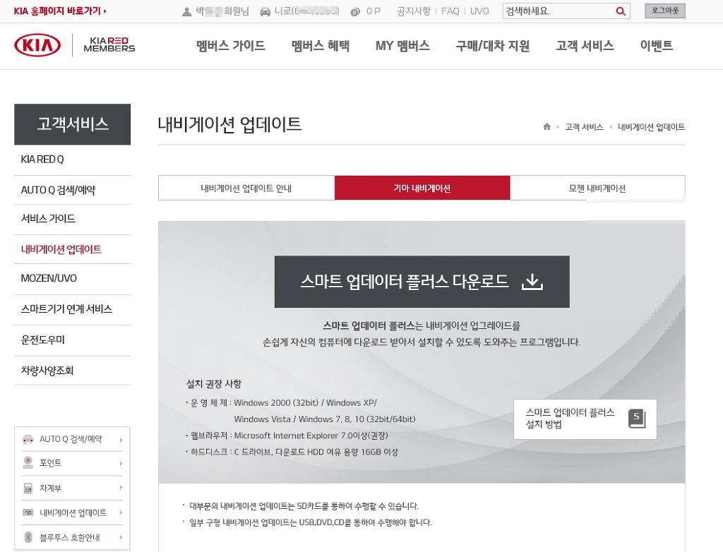 기아네비게이션에서 스마트 업데이트 플러스 다운로드를 클릭하여.....