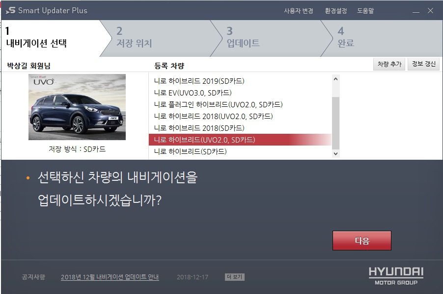 내 차량은 2016년 생산되어 16을 찾아 보았으나 없어서 니로하이브리드 UVO2.0로 지정하였고...