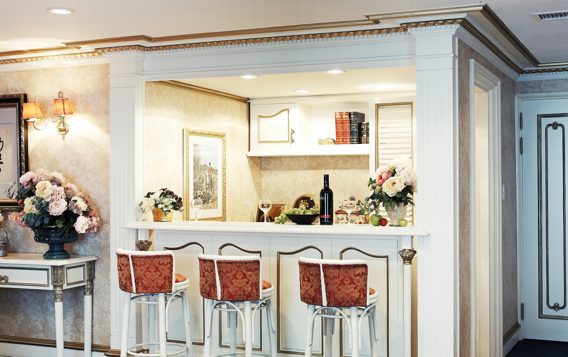 전용 바가 있는 다이닝룸을 갖춘 단 하나뿐인 역사가 남아 있는 스위트 객실입니다.