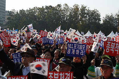 *조선일보사 코 앞인 서울시청 광장에서 어제 있었던, 2만 명(주최측 추산)의 대군중이 모인 '대한민국의 생명선 NLL 포기 음모 규탄 국민궐기대회'는 한 줄도 보도하지 않았다. 200여 개 애국운동단체가 참여한 이 대회는 李明博(이명박) 대통령에게 김정일-노무현 대화록을 공개할 것을 요구하였다.