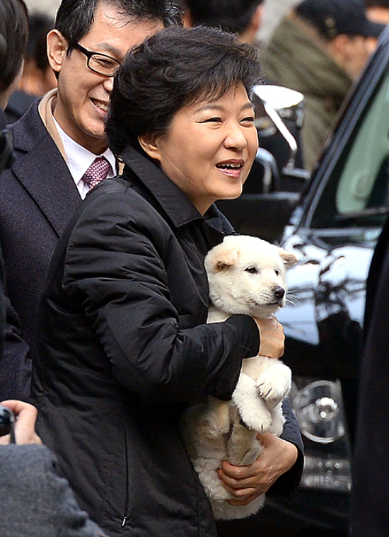 인터넷 검색하다 우연히 발견한 박근혜 대통령님의 사진을 발견하였습니다.아마도 대통령 취임직전 거주하던 삼성동 자택에서 주민들이 기념 선물로 드린 강아지를 안고 있는 사진인데 매우 행복하고 즐거운 표정이었스나 오른쪽 얼굴에 그어진 뚜렷한 칼자국 흉터가 유난히 뚜렷하여 마음이 아팠습니다.